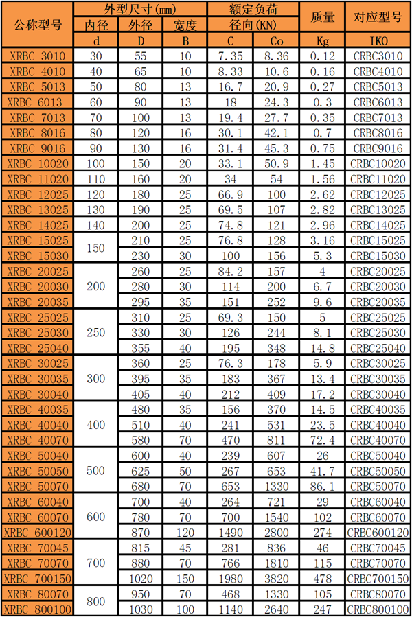 1、附帶密封圈的公稱型號是XRBC***UU。