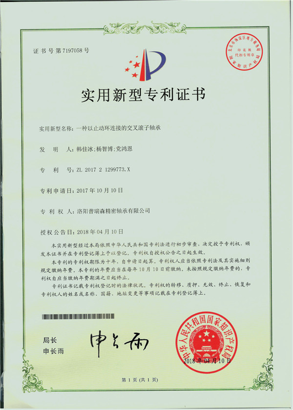 止動環(huán)連接的交叉滾子軸承