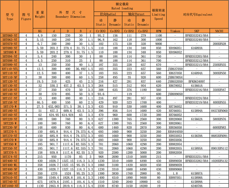 XRT系列軸承適用于高速機(jī)床應(yīng)用,如立式鏜床和立式磨床。也別適用于許多空間有限,旋轉(zhuǎn)精度要求較高的設(shè)備。