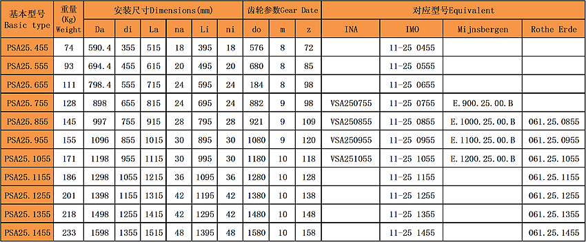 洛陽普瑞森精密軸承(PRS)為用戶提供PSA系列內(nèi)齒型回轉(zhuǎn)支承。PSA25系列帶有外齒,有良好的承載力以及便于安裝等點(diǎn),歡迎選購。同時(shí),我們也可以根據(jù)客戶自己的需要重新設(shè)計(jì),我們經(jīng)驗(yàn)豐富,產(chǎn)品系列齊,完可以滿足用戶對(duì)標(biāo)準(zhǔn)和非標(biāo)準(zhǔn)軸承的需要,歡迎新老客戶前來訂購。